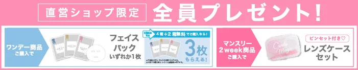 フェイスパックは1注文につき1枚。4箱+2箱無料(合計6箱)のワンデー対象商品は2枚プレゼント。 なくなり次第終了になるため、予告なく変更・終了の可能性がございます。