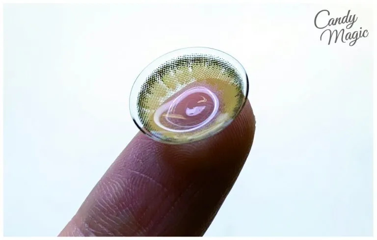 高発色カラコン「ルナナチュラル ワンデー ハニー」は、チャコールのフチにメインがイエローベージュのデザイン。