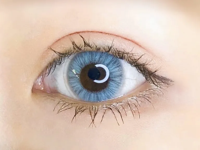 高発色カラコン「チュチュ ワンデー ベイビーブルー」は、かなり薄いグレーのフチに、内側は爽やかブルーとグレーが混じり合った独特のカラー♡