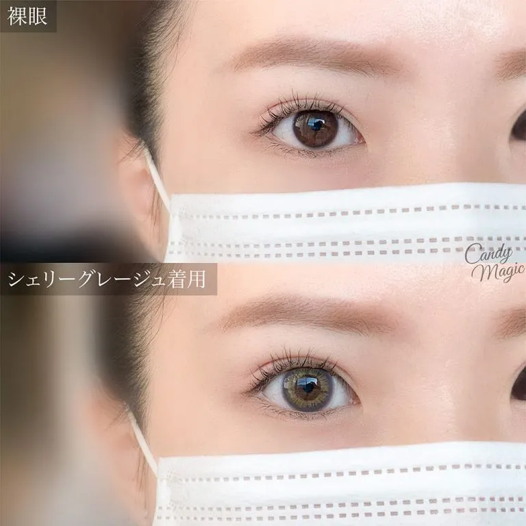 マスク姿に映えるおすすめ人気カラコンみっつめは、candymagic 1day(キャンディーマジック ワンデー) シェリーグレージュ。