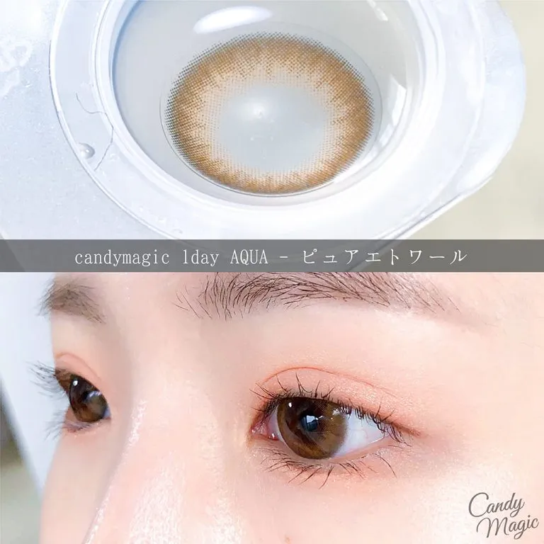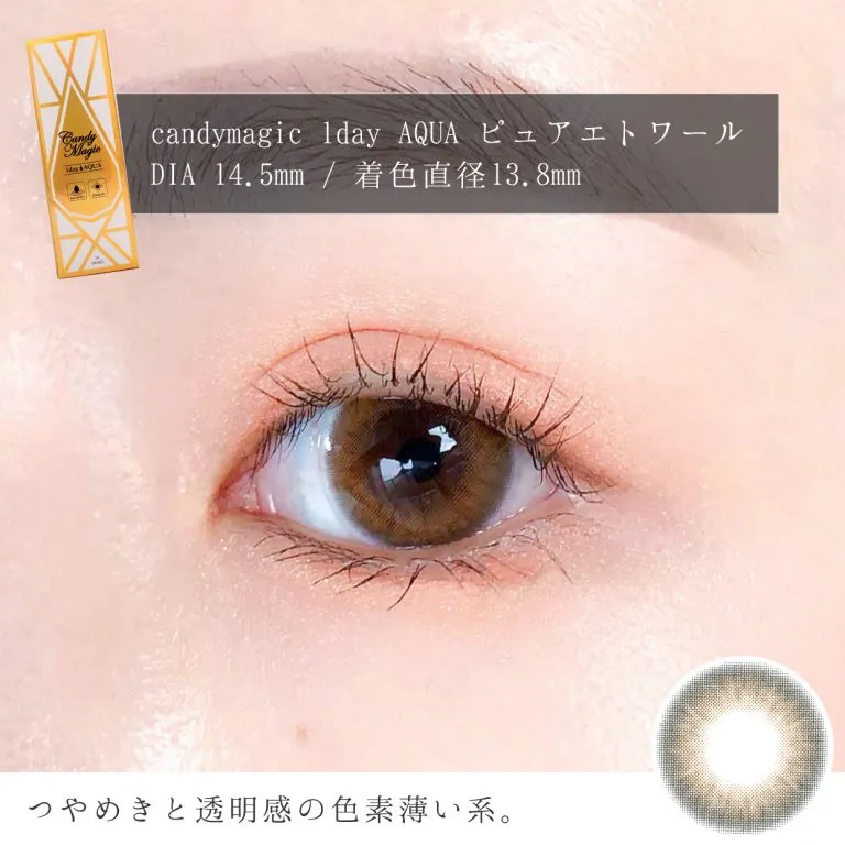 candymagic 1day(キャンディーマジック ワンデー)ピュアエトワールは、潤んだ瞳を演出できる、色素薄い系華やかブラウンカラコンです。