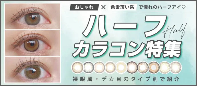 ナチュラル派さん向けハーフカラコンと、盛りたい派さん向けハーフカラコンに分けてピックアップしました。