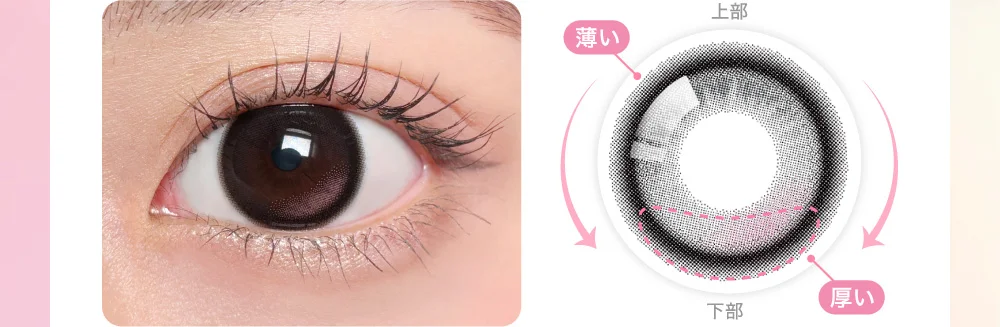 装着後、瞬きとともにレンズが少しずつ回転しながら一番可愛く見える固定位置まで動きます。